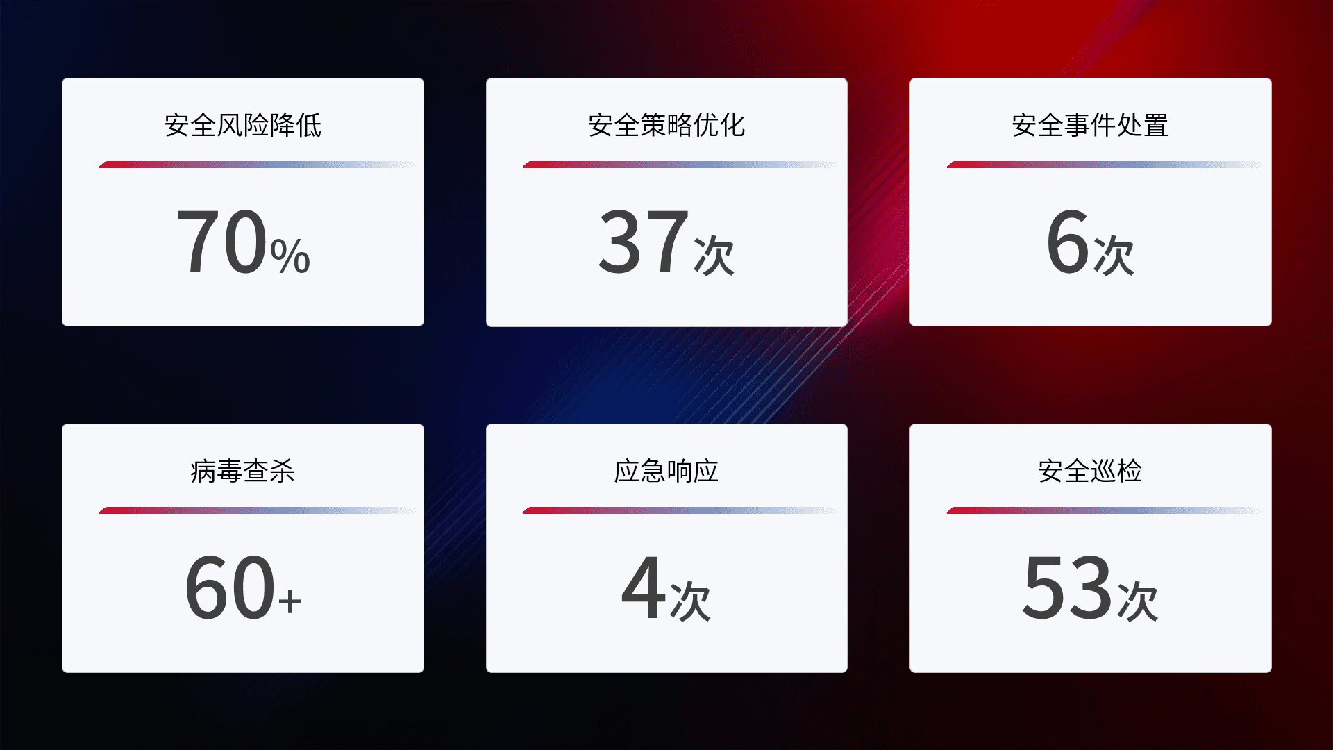 提供全面的安全事件报告体系,,,包括处置报告、、、、周报、、、、季度和年度总结,,,结合持续监控,,,帮助客户深入了解网络安全状况。。。。
