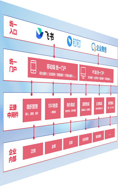 对协作平台提供支持服务,,,支持企业应用与协作平台对接,,,包含组织同步、、、、消息集成、、待办集成等。。支持目前主流的协作平台:钉钉、、企微和飞书。。。。
